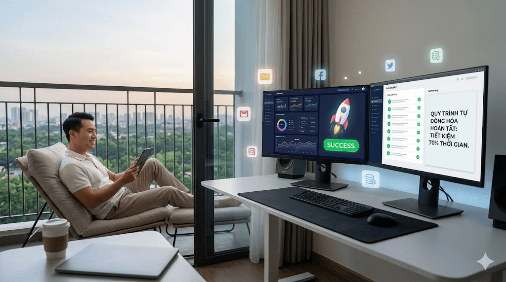 Hãy tưởng tượng: bạn bắt đầu ngày làm việc lúc 9 giờ sáng, và đến 11 giờ, mọi email đã được phân loại và soạn thảo trả lời, báo cáo tuần đã được tổng hợp tự động, bài đăng mạng xã hội cho cả tuần đã lên lịch xong, và chatbot đã xử lý 80% câu hỏi của khách hàng từ đêm qua. Đây không phải viễn cảnh tương lai — đây là thực tế mà AI Automation đang mang lại cho hàng nghìn người đi làm trên thế giới ngay lúc này.