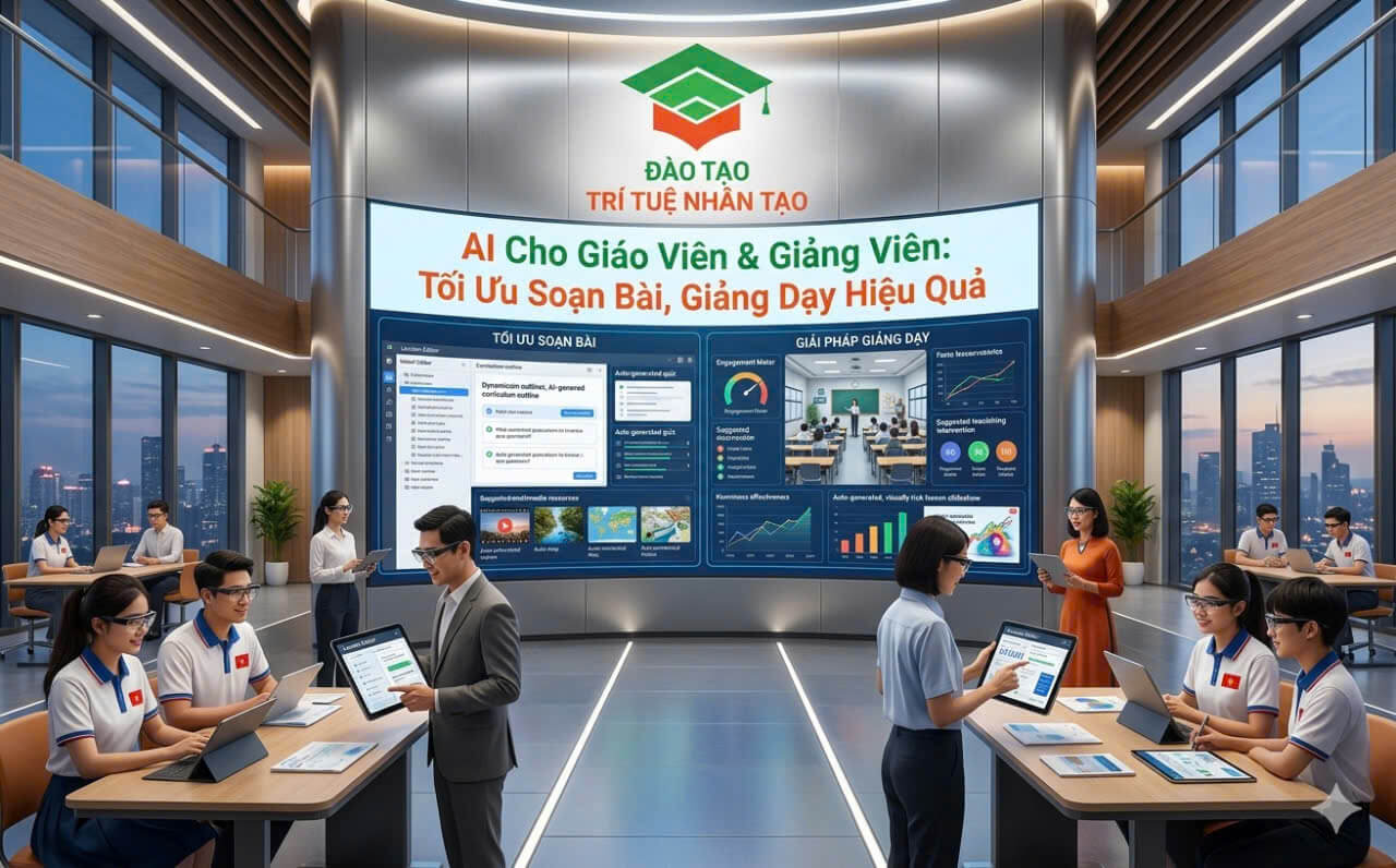 AI Cho Giáo Viên & Giảng Viên đang trở thành công cụ quan trọng giúp tối ưu quá trình soạn bài, xây dựng học liệu và nâng cao hiệu quả giảng dạy trong môi trường giáo dục hiện đại. Khi ứng dụng đúng cách, AI giúp giáo viên tiết kiệm thời gian chuẩn bị bài giảng và tập trung nhiều hơn vào chất lượng truyền đạt kiến thức.