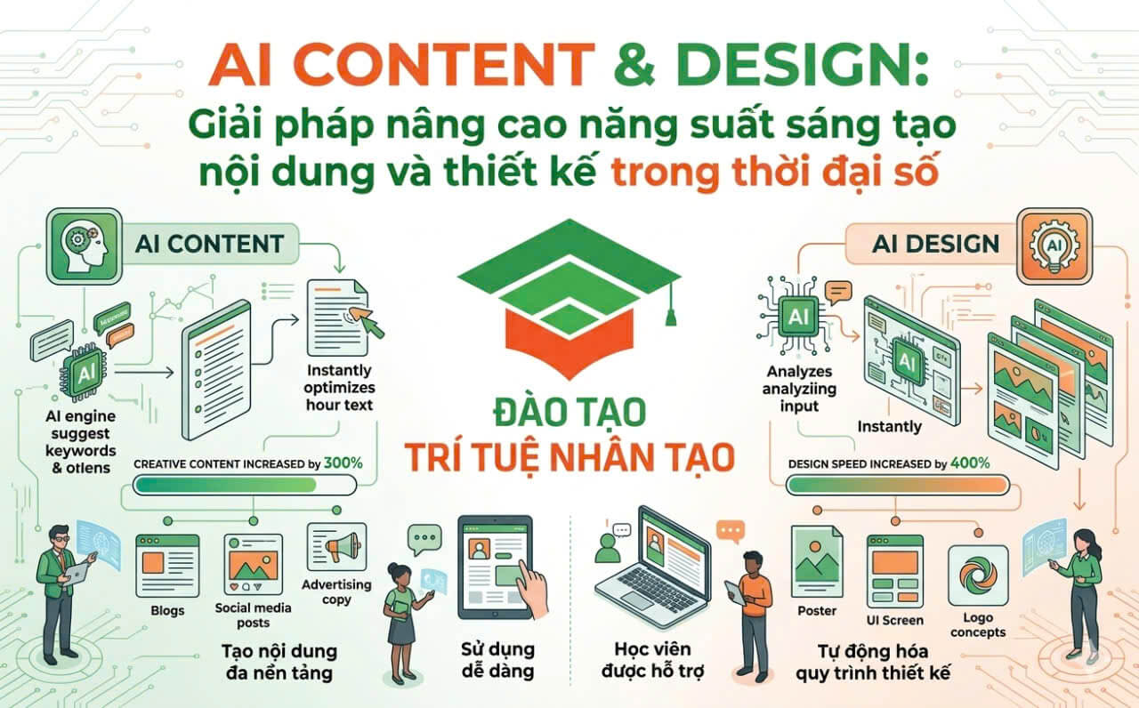 Nếu bạn đang muốn bắt đầu ứng dụng AI Content & Design vào công việc thực tế hoặc triển khai hệ thống sáng tạo nội dung thông minh cho doanh nghiệp, hãy truy cập website chính thức tại https://daotaotrituenhantao.com/ để tìm hiểu chương trình đào tạo phù hợp và đăng ký tư vấn triển khai ngay hôm nay.