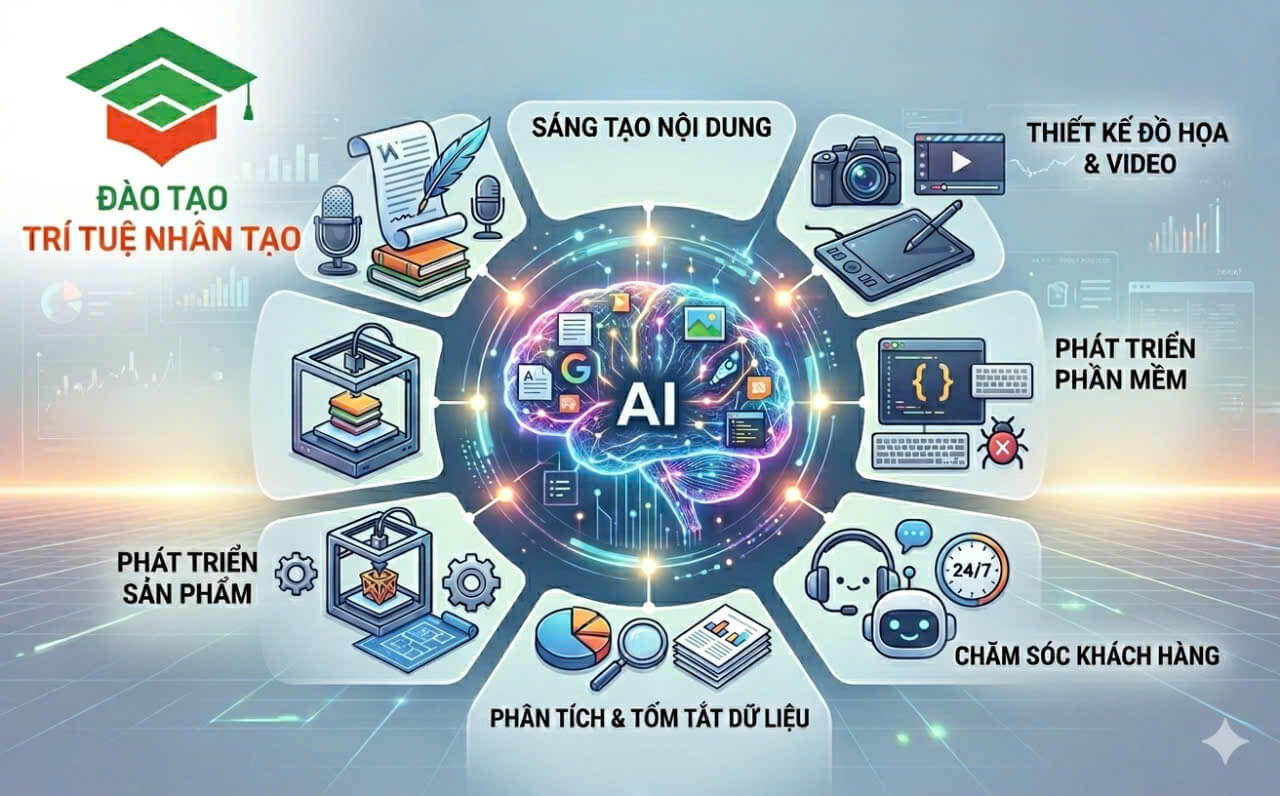 Tại đây bạn có thể khám phá các chương trình đào tạo trí tuệ nhân tạo giúp ứng dụng generative AI hiệu quả trong doanh nghiệp và môi trường làm việc.