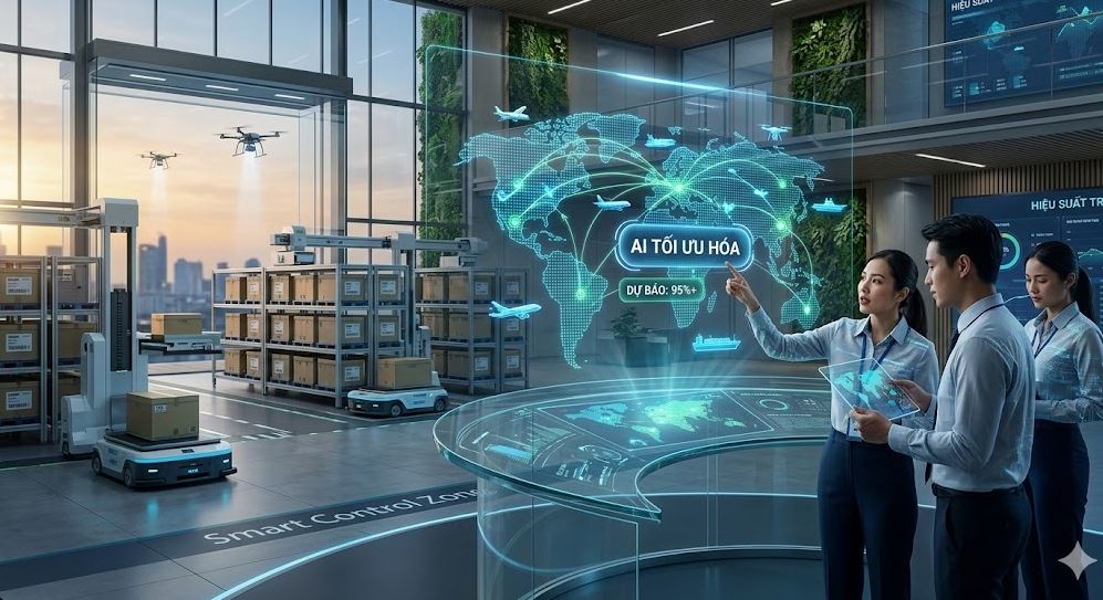 Năm 2026 đánh dấu thời điểm trí tuệ nhân tạo không còn là công cụ phân tích thụ động mà đã trở thành “người trợ lái” (Co-pilot) điều hành toàn bộ dòng chảy hàng hóa. Theo các báo cáo thị trường, những doanh nghiệp dẫn đầu trong việc tích hợp AI đã ghi nhận mức giảm 15-20% chi phí vận chuyển và tăng 25% năng suất kho bãi.
