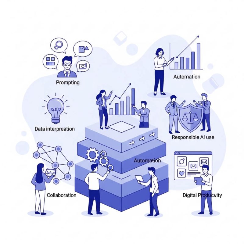 Rất chặt chẽ. Nếu doanh nghiệp muốn triển khai công cụ ở cấp độ tổ chức, họ càng cần AI literacy cho doanh nghiệp để đội ngũ hiểu đúng và AI governance cho doanh nghiệp để có quy tắc quản trị rõ ràng. Không có hai yếu tố này, dù công cụ mạnh đến đâu thì rủi ro vẫn rất lớn.