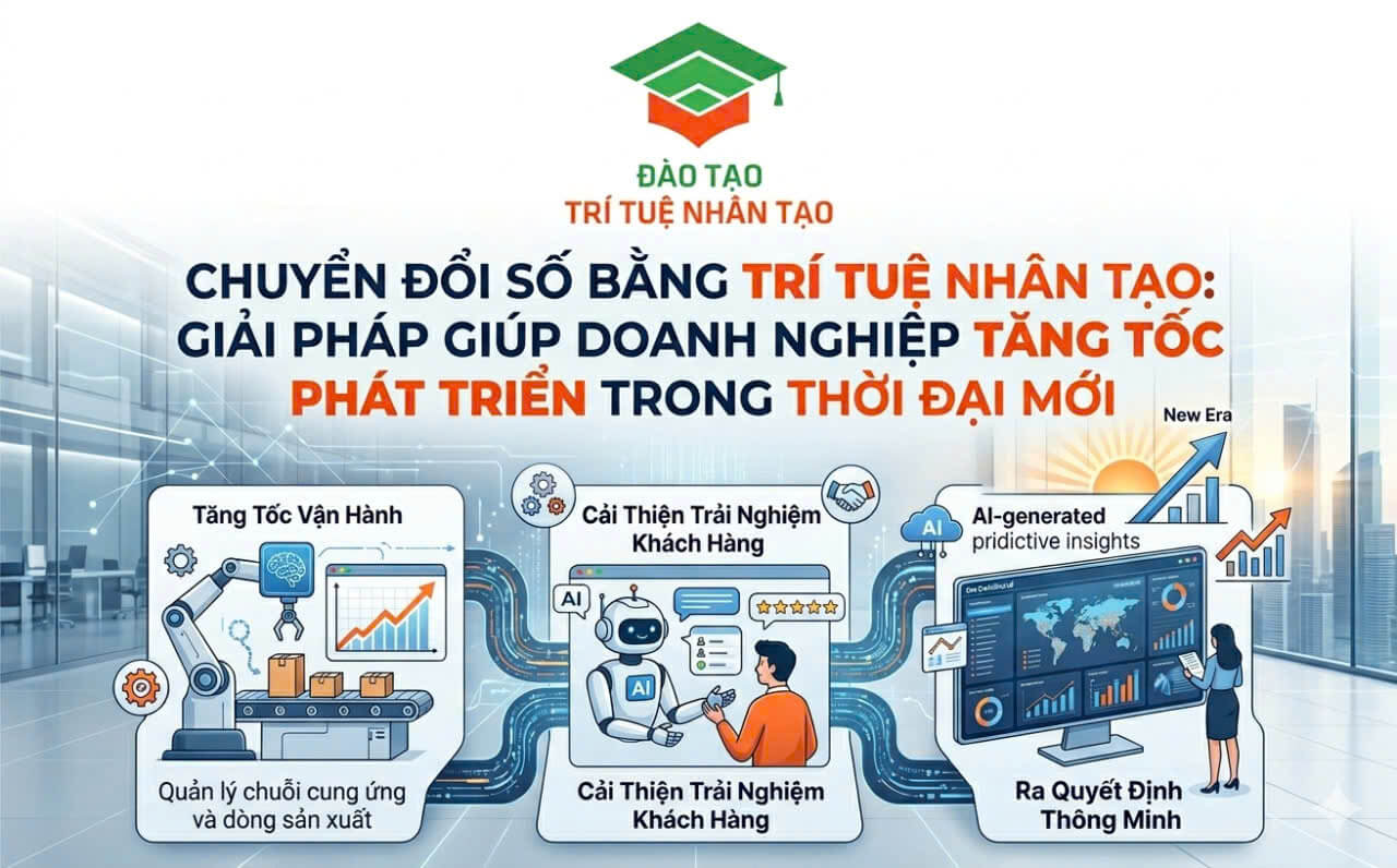 Trong bối cảnh cạnh tranh ngày càng khốc liệt, chuyển đổi số không còn là lựa chọn mà đã trở thành chiến lược bắt buộc của nhiều doanh nghiệp. đặc biệt, việc ứng dụng trí tuệ nhân tạo đang giúp các tổ chức tối ưu quy trình vận hành, nâng cao năng suất nhân sự và cải thiện trải nghiệm khách hàng một cách rõ rệt.