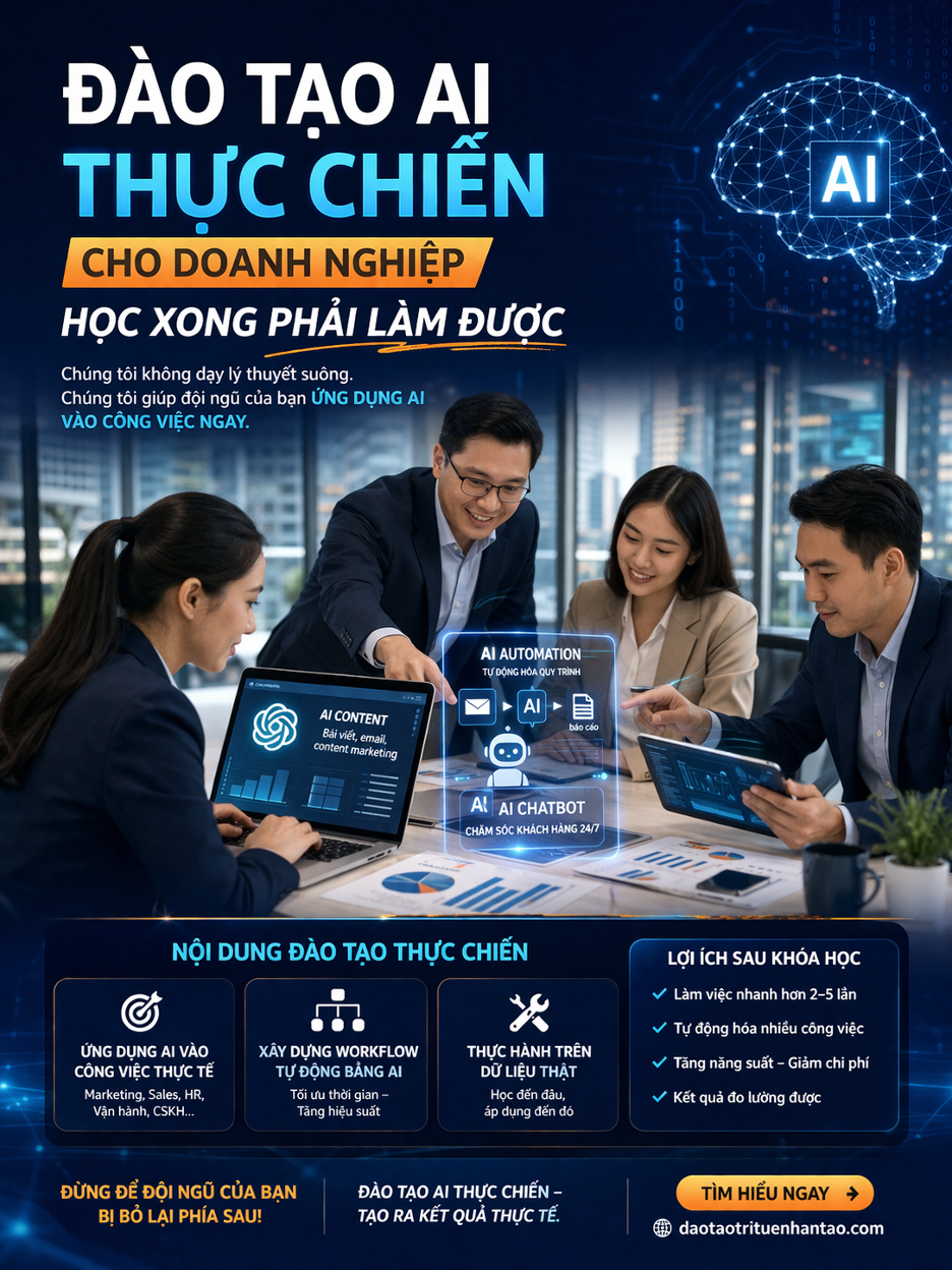 Trong bối cảnh chuyển đổi số đang diễn ra mạnh mẽ, đào tạo AI nội...