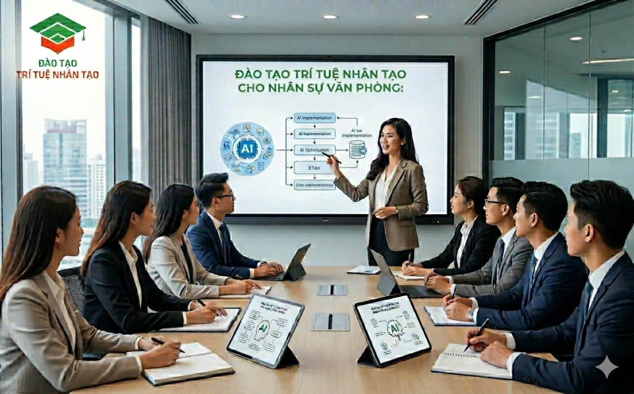 Đào tạo trí tuệ nhân tạo đang trở thành kỹ năng quan trọng đối với nhân sự văn phòng trong môi trường làm việc hiện đại. Khi khối lượng công việc ngày càng tăng, việc ứng dụng AI đúng cách giúp tiết kiệm thời gian và nâng cao hiệu quả rõ rệt.