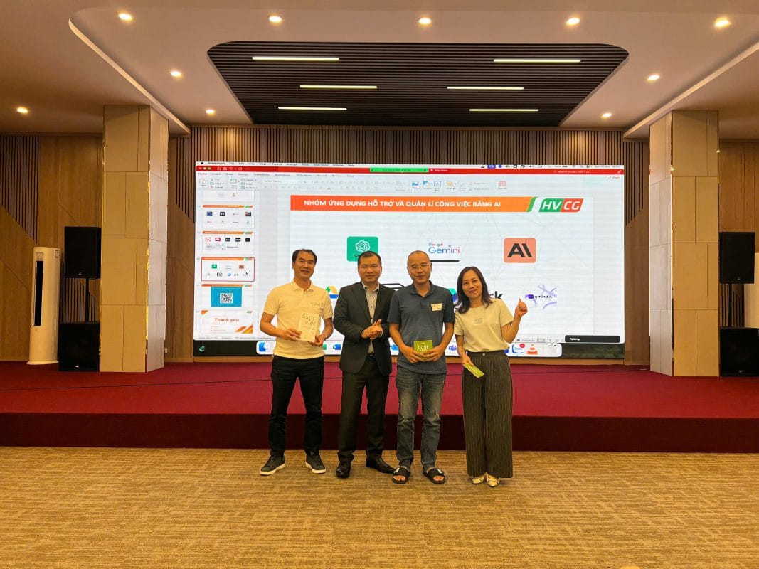Không chỉ dừng lại ở kỹ thuật, chương trình nhấn mạnh việc thay đổi tư duy – từ “ngại công nghệ” sang chủ động khám phá. Điều này được minh chứng rõ ràng khi 100% học viên trực tiếp trải nghiệm các bài tập thực chiến: tạo bản tin nội bộ bằng AI, lên kế hoạch tổ chức sự kiện chi nhánh tự động hóa, và cá nhân hóa thông điệp chăm sóc khách hàng.