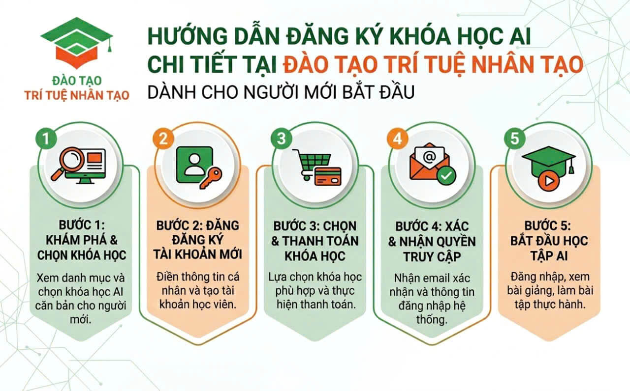 Bài viết này cung cấp hướng dẫn đăng ký khóa học rõ ràng, dễ thực hiện dành cho người mới tìm hiểu chương trình tại hệ thống Đào tạo trí tuệ nhân tạo.