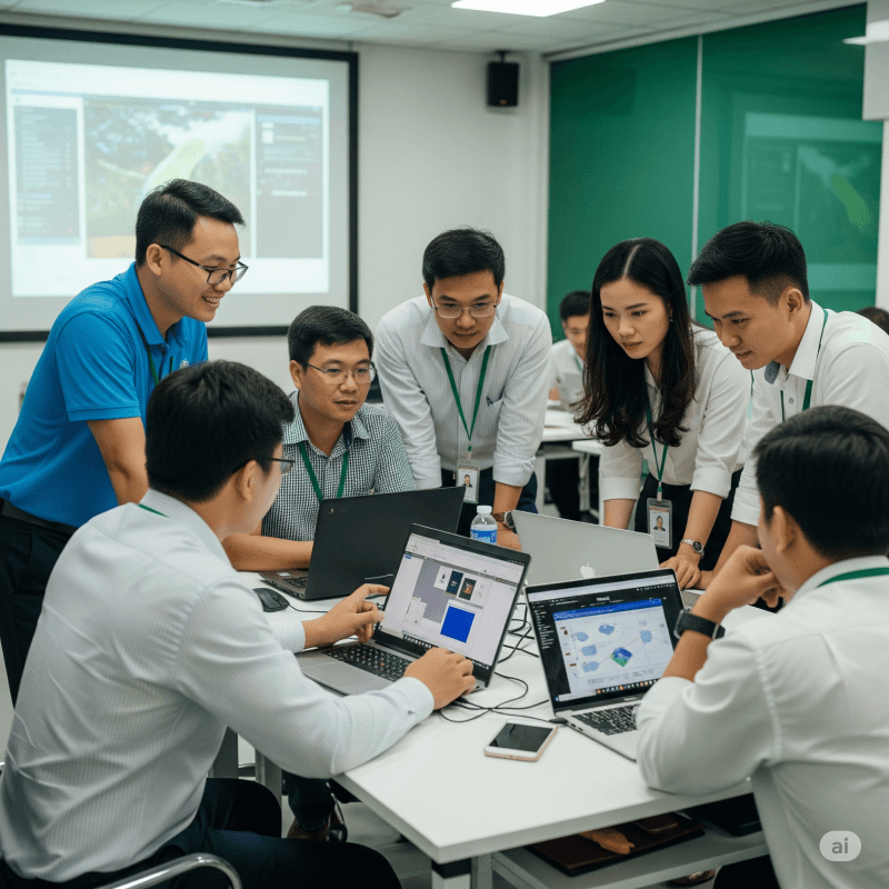 Học viên tạo được sản phẩm thực tế (slide, video, chatbot, hoặc kế hoạch môi trường) ngay trong lớp.