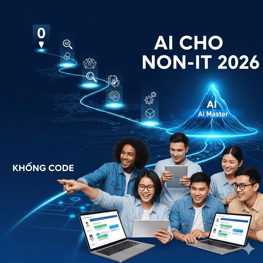 Bạn không phải lập trình viên nhưng vẫn muốn làm chủ trí tuệ nhân tạo? Đây chính là thời điểm vàng. Năm 2026, lộ trình học AI cho Non-IT trở nên dễ tiếp cận hơn bao giờ hết nhờ sự phát triển mạnh mẽ của các công cụ No-Code/Low-Code và Generative AI.