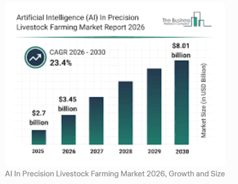 | Thị trường 2026 | Tăng trưởng mạnh ở phòng khám nhỏ | Thị trường Precision Livestock Farming đạt ~3.45 tỷ USD (CAGR 23.4% đến 2030) |