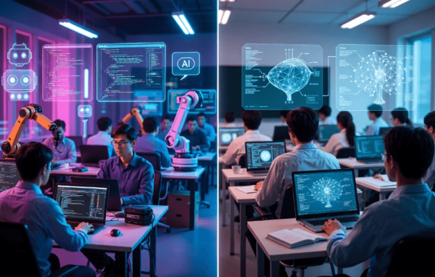 Trong thời đại AI bùng nổ tại Việt Nam, hàng ngàn bạn trẻ đang phân vân giữa khóa học AI thực chiếnkhóa học AI lý thuyết. Một bên nhấn mạnh dự án thực tế, coding và áp dụng ngay vào công việc. Bên kia tập trung xây dựng nền tảng toán học, thuật toán và kiến thức sâu. Bài viết này sẽ so sánh chi tiết hai loại khóa học AI phổ biến nhất hiện nay để giúp bạn chọn đúng hướng đi.