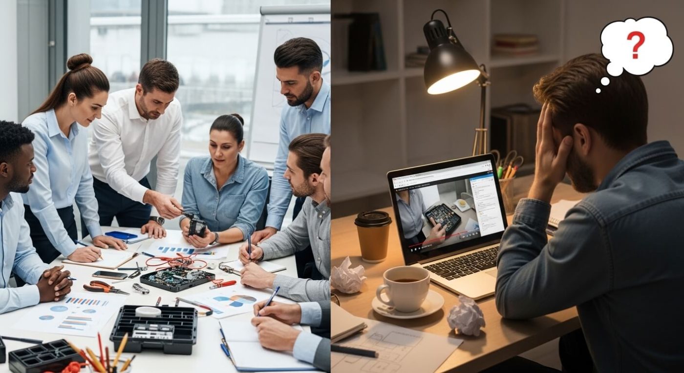 YouTube cung cấp kho thông tin khổng lồ nhưng thiếu lộ trình rõ ràng cho người học.Nhân sự thường rơi vào tình trạng “biết mỗi thứ một ít” nhưng không thể kết nối thành quy trình.Ngược lại, đào tạo thực chiến thiết kế dựa trên các tình huống thực tế doanh nghiệp đối mặt.Kiến thức trong các khóa học này đã được chọn lọc, kiểm chứng và sắp xếp logic.Thay vì bơi trong biển thông tin rời rạc, nhân viên được dẫn dắt từng bước đạt mục tiêu.Các chương trình thực chiến tập trung giải quyết vấn đề thay vì chỉ cung cấp lý thuyết.