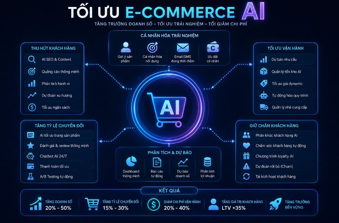 Ứng dụng Tối ưu E-commerce AI giúp SME khẳng định vị thế dẫn đầu trong kỷ nguyên kinh doanh số. Nó giúp bạn bứt phá doanh thu nhờ sự thấu hiểu hành vi và mong muốn của khách hàng. Khi việc mua sắm trở thành một trải nghiệm hạnh phúc, khách hàng sẽ luôn quay lại với bạn.
