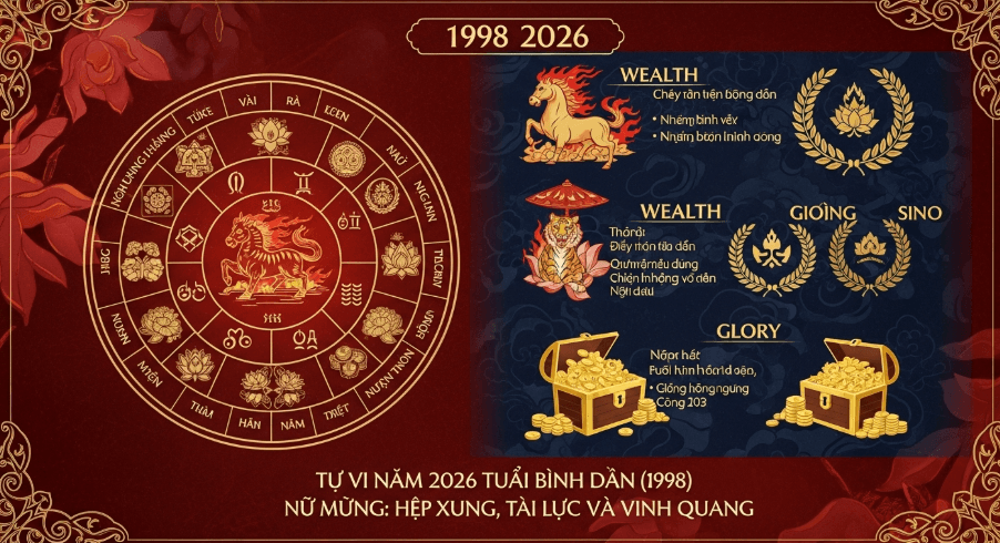 Năm 2026 dự báo là một năm “bội thu” về mặt tài chính cho nữ mạng 1998. Thiên can tương sinh giúp dòng tiền đổ về từ nhiều nguồn khác nhau: từ công việc chính, các khoản đầu tư tay trái hay thậm chí là những khoản thưởng bất ngờ.